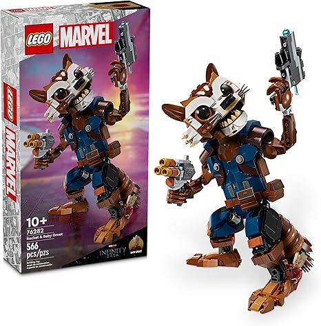 LEGO Marvel Rocket & Baby Groot Minifigure, Guardians of The Galaxy Inspired Marvel Toy for Kids, Buildable Marvel Action Figure for Play and Display, Gift for Boys and Girls Ages 10 and Up, 76282